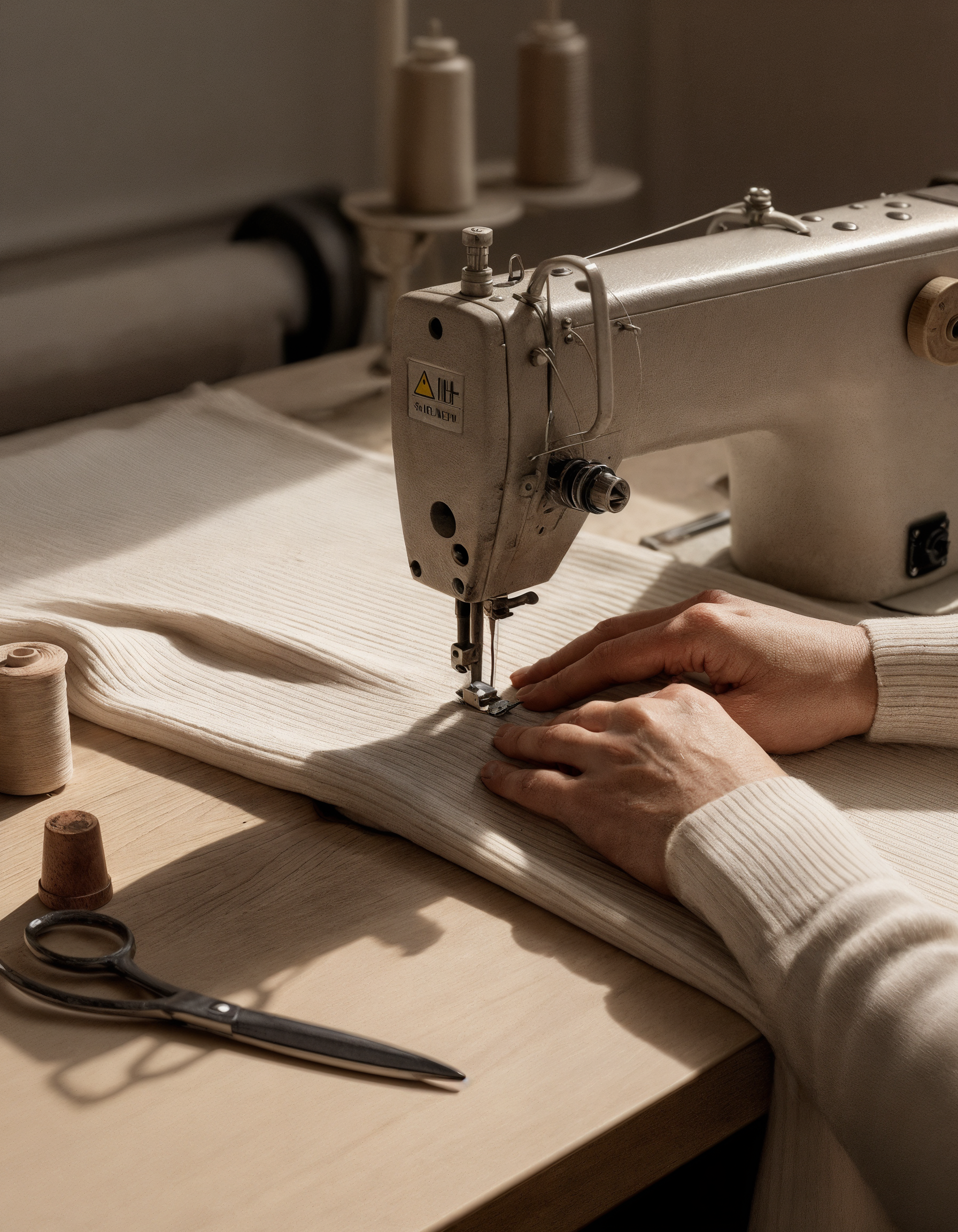 Mūsų drabužiai gaminami pagal nuoseklų, patikrintą procesą: atidžiai parenkami audiniai, tiksliai suformuotos siūlės ir galutinė kokybės patikra prieš išsiunčiant. Tai nėra prabangi aukštoji mada — tiesiog gerai apgalvota, komfortiška kasdienė apranga, sukurta tarnauti ilgiau nei įprasti greitos mados pasirinkimai.