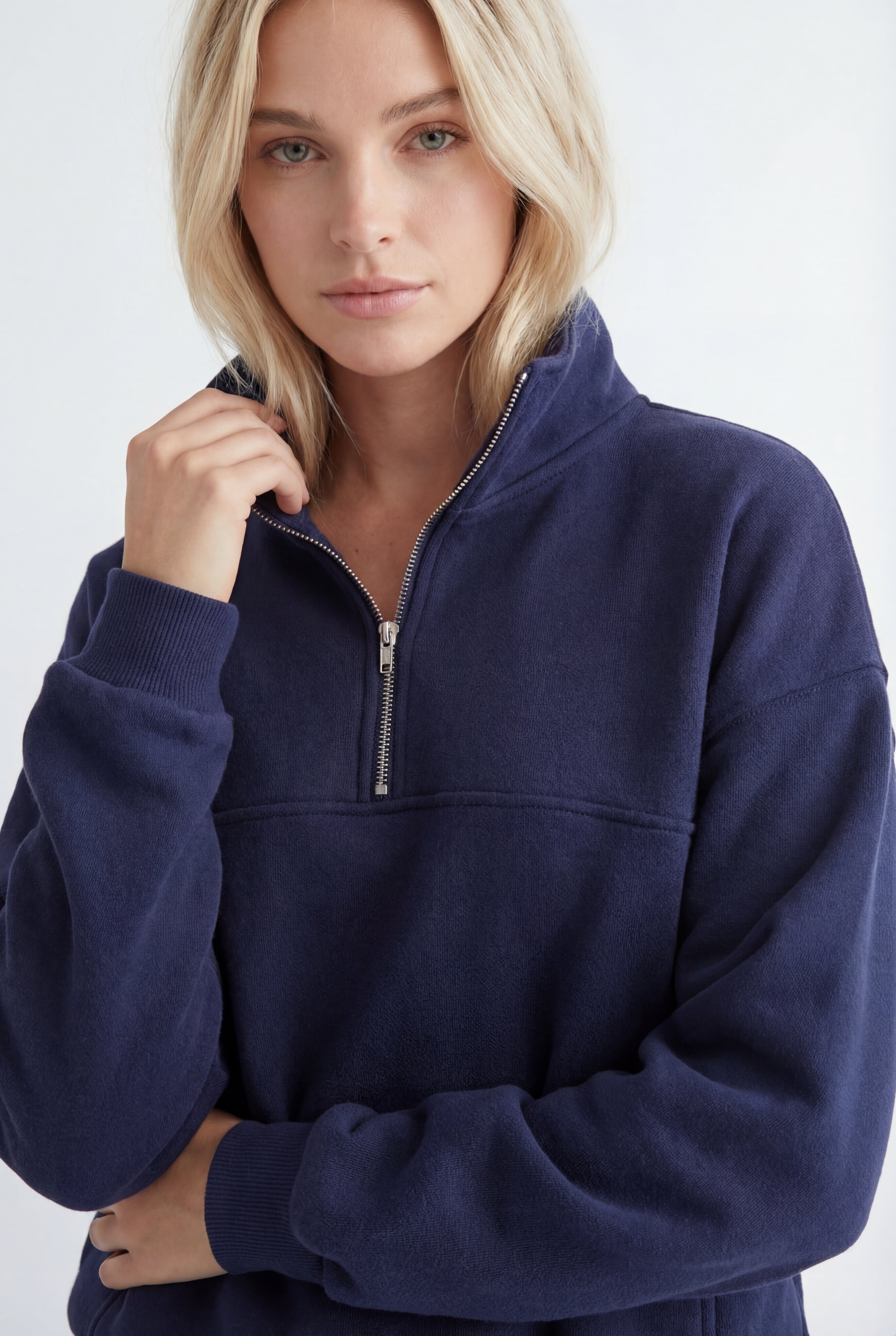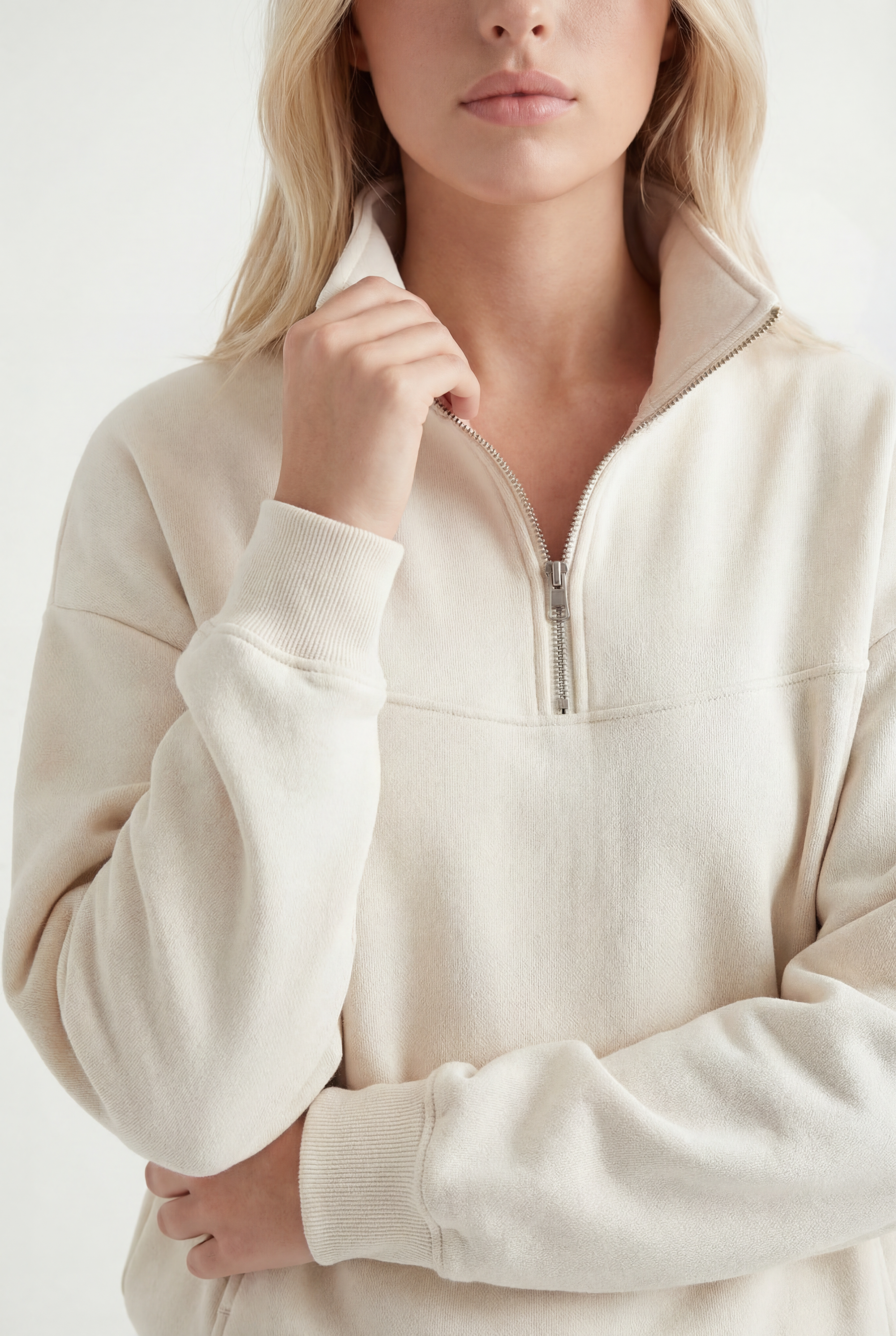 - Aukšta apykaklė su užtrauktuku iki pusės