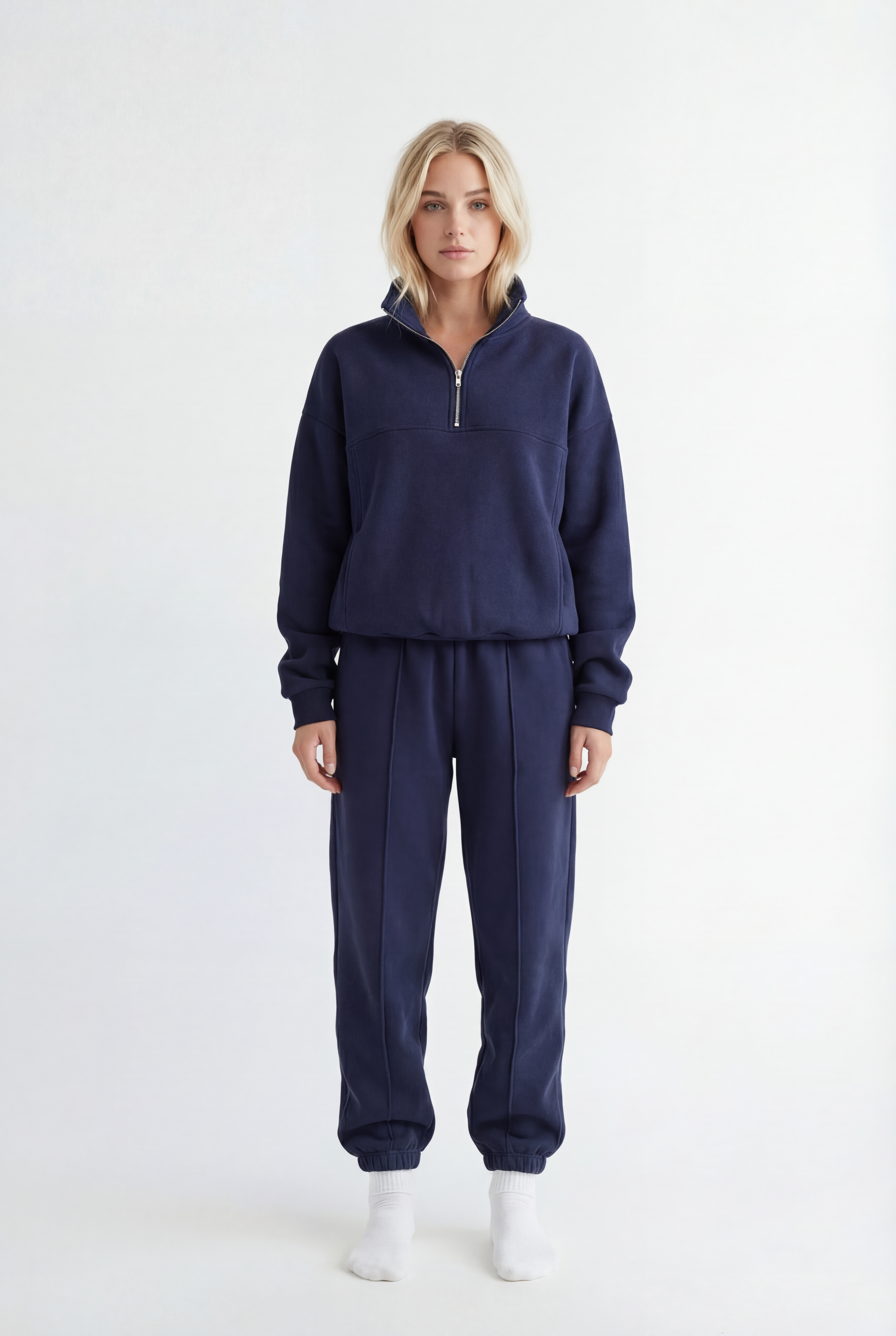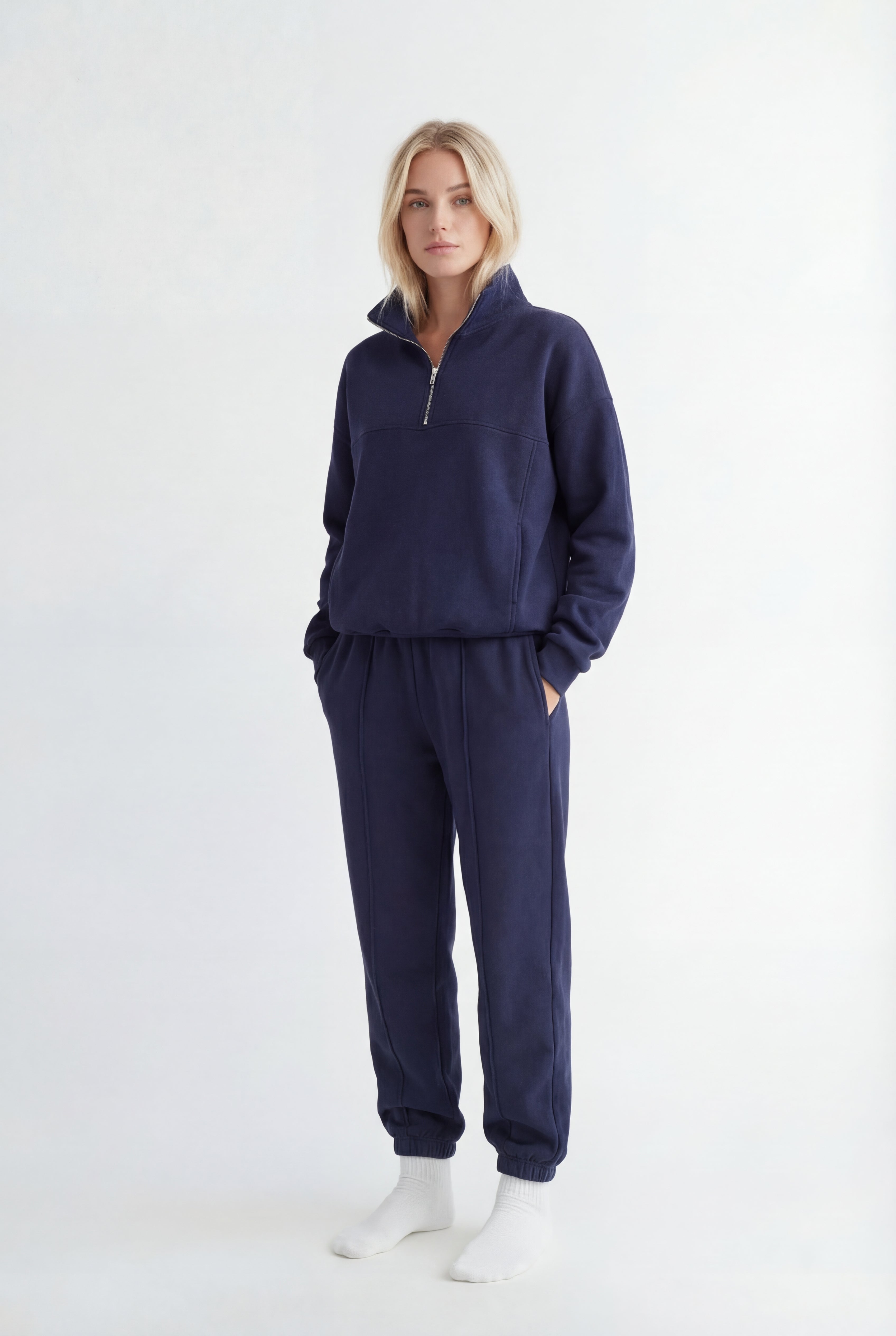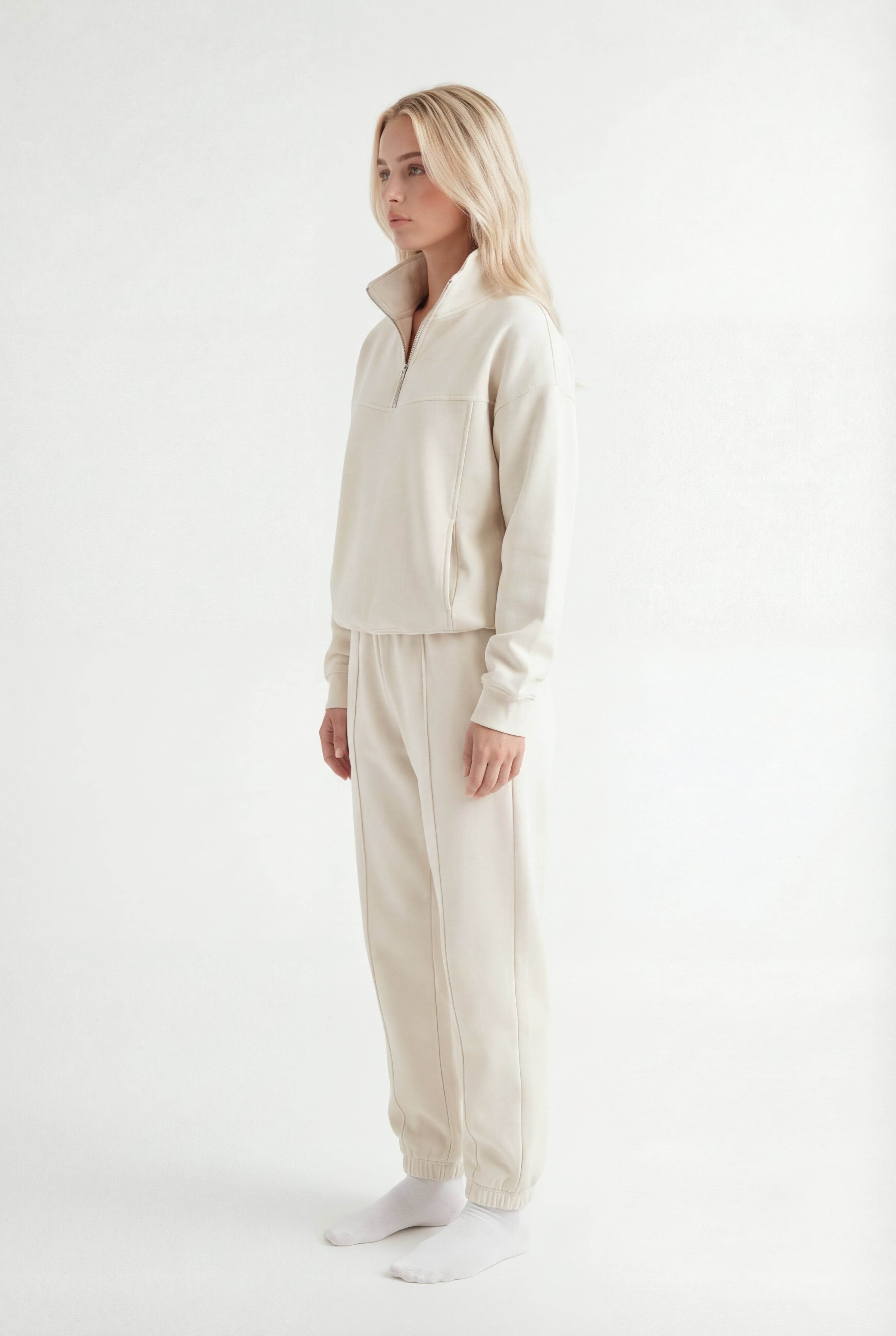 „Élyse“ – tai šiuolaikiškas sportinis kostiumas, sukurtas derinti komfortą ir stilių. Minimalistinis dizainas, švelni medžiaga ir praktiškas užtrauktukas suteikia universalumo – šį derinį lengvai pritaikysi tiek kasdienai, tiek aktyviam laisvalaikiui.