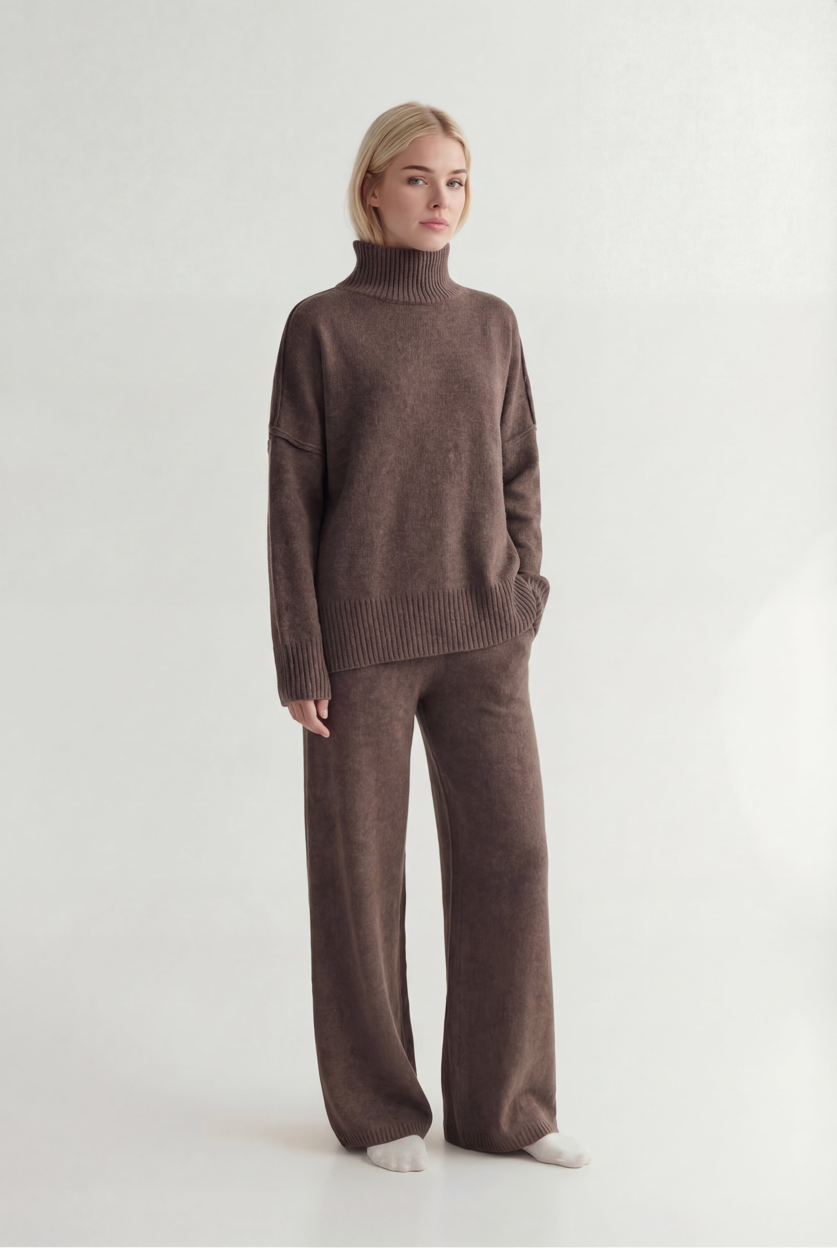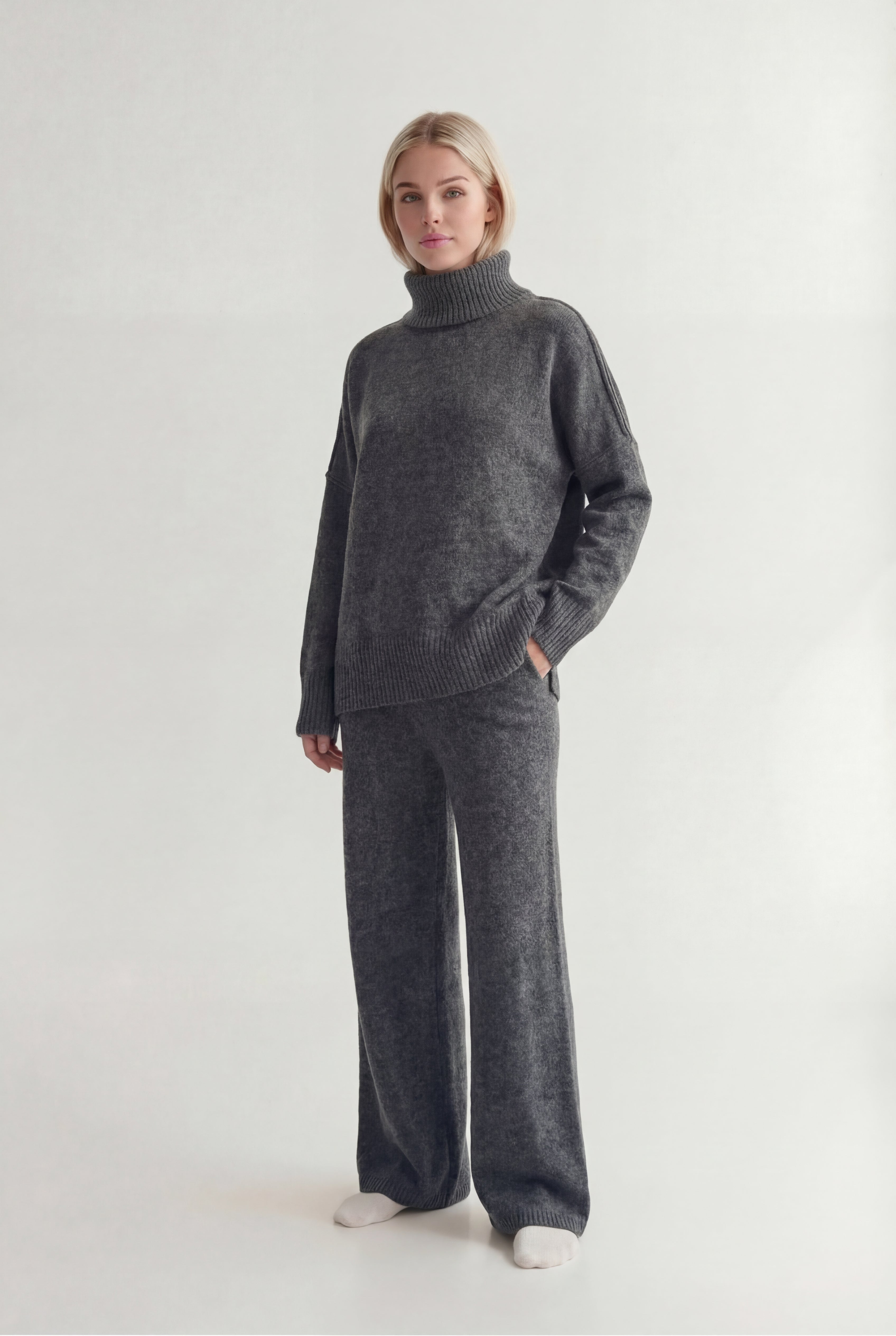 Šis dviejų dalių komplektas – išskirtinai pritaikytas stilingam komfortui: viršų su laisvu kirpimu derina su plačiomis kelnėmis, pagamintas iš aukštos kokybės poliesterio.